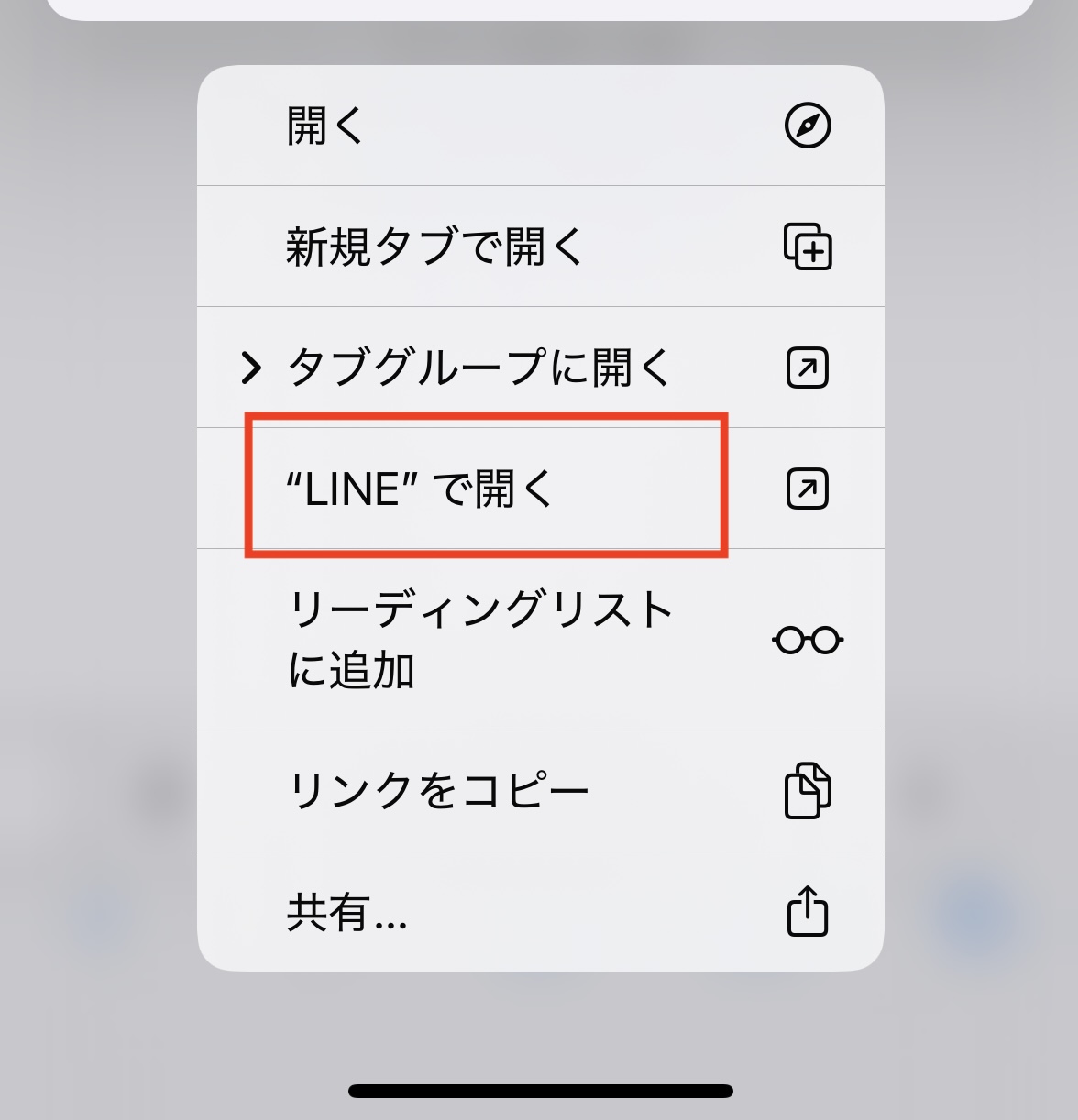 うまく切り替わらない場合は、リンクを長押し →「LINEで開く」